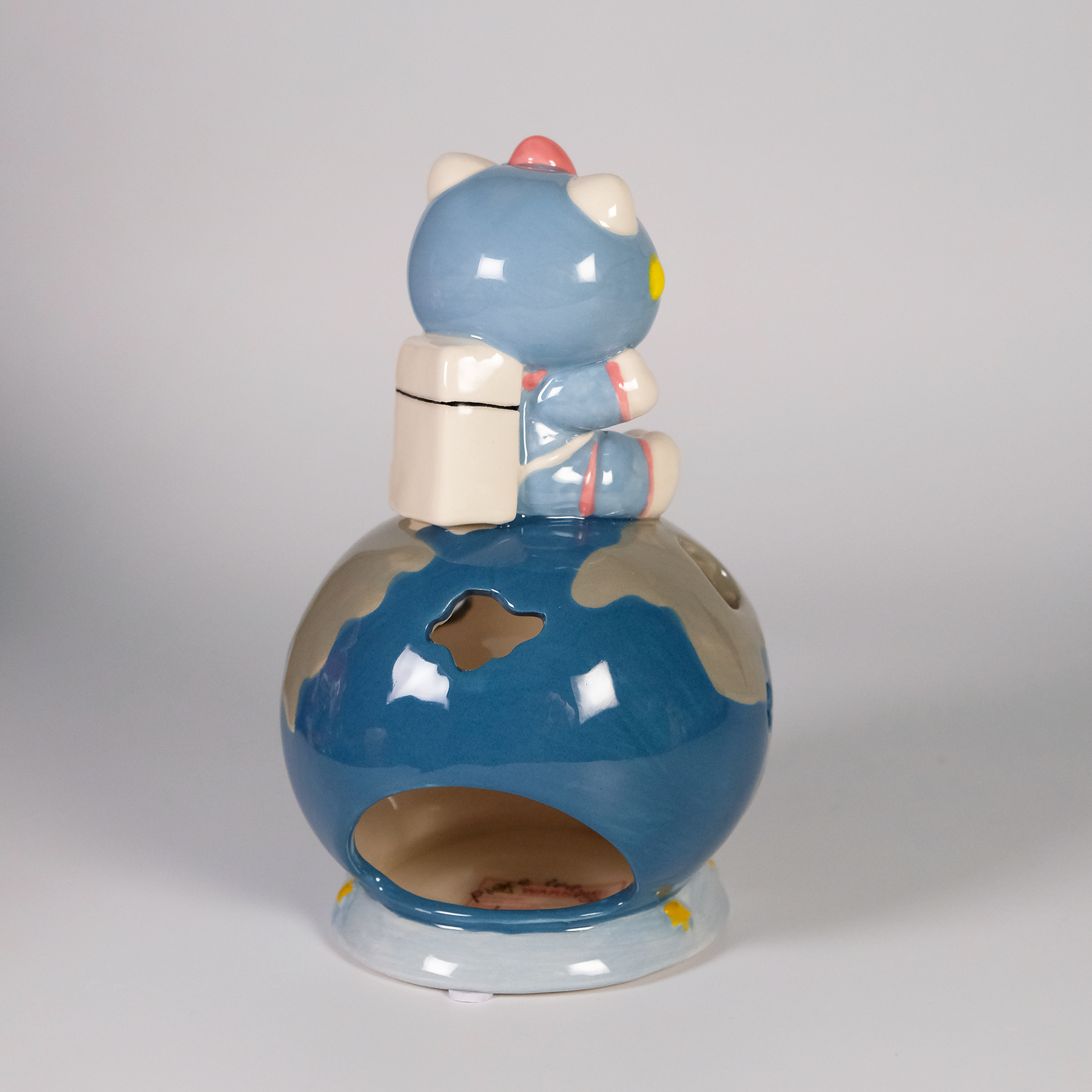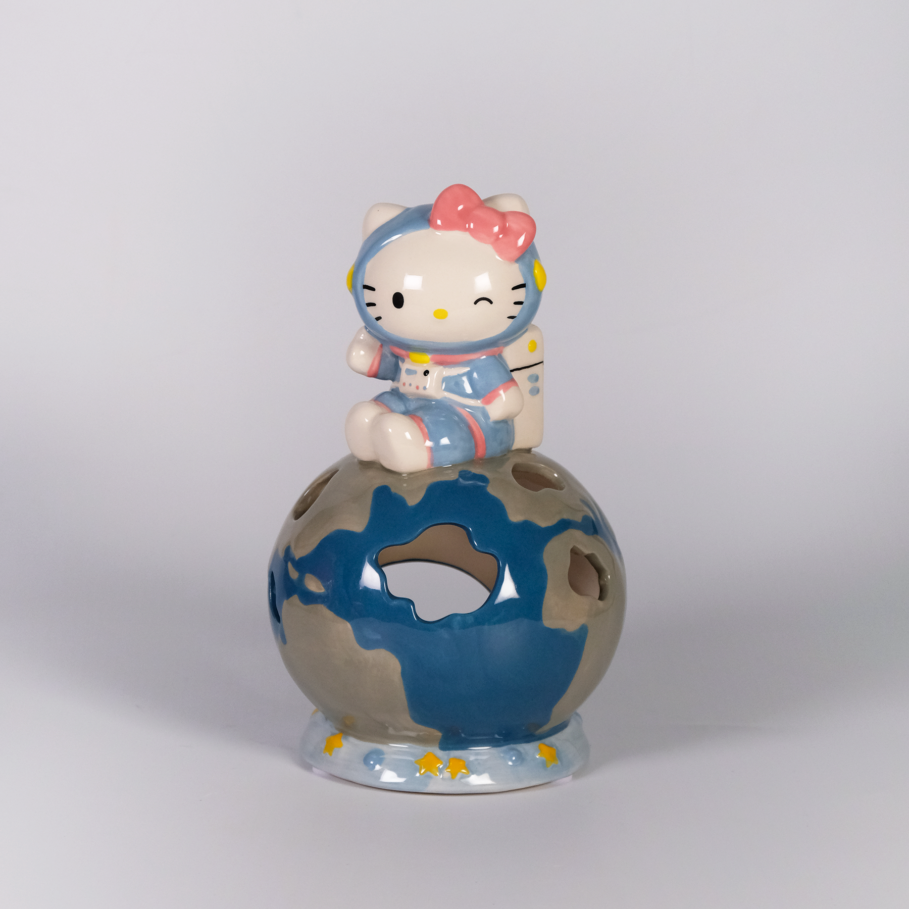 Explore a world of cozy glow with the Hello Kitty Earth Explorer Candle House. This charming ceramic piece features Hello Kitty in her pastel spacesuit, sitting sweetly atop a globe-shaped candle house—ready to light up your home with interstellar cuteness. Her winking expression, tiny star details, and hand-painted suit make the scene irresistible for fans of all ages. ✨🌍💫
