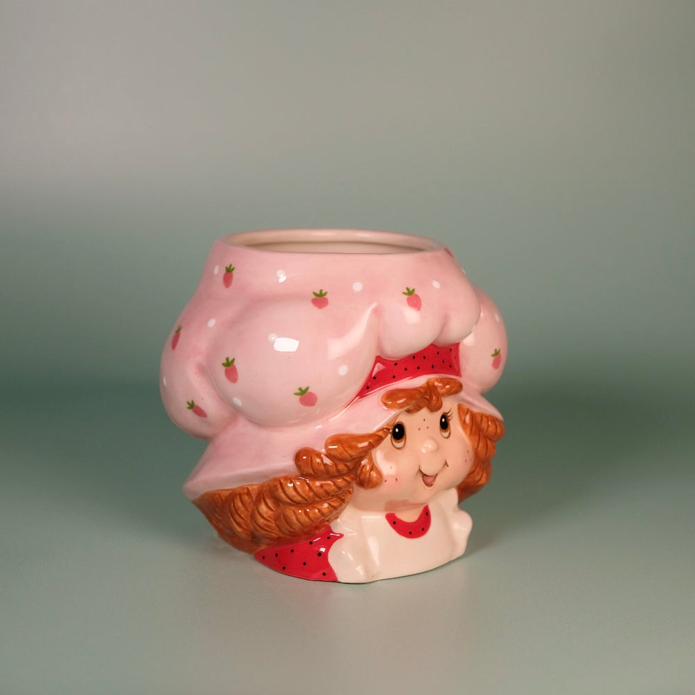Shaped like Strawberry Shortcake’s cheerful face, complete with her signature pink bonnet sprinkled with tiny strawberries, this hand-painted piece is perfect for holding small plants, flowers, or even kitchen utensils. With its glossy finish and vibrant colors, it makes a charming addition to any room, patio, or collector’s display. 🩷