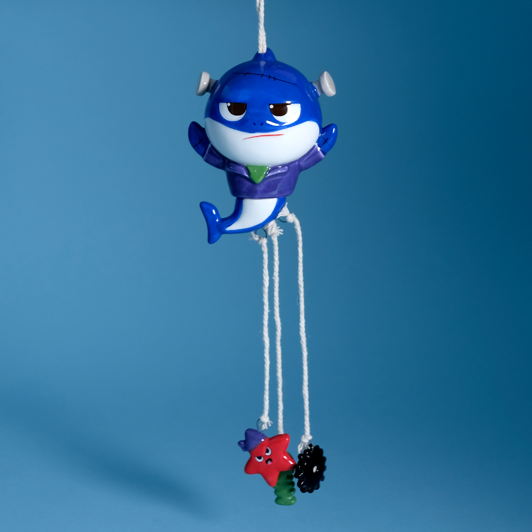 Featuring Daddy Shark dressed as a moody Frankenstein, this quirky hanging décor adds a fun and spooky twist to the beloved Baby Shark character. Made of glossy ceramic with colorful chime accents in red, green, and black, it’s perfect for hanging indoors or on a covered patio. When the breeze hits, the dangling legs jingle gently for a soft, whimsical sound. 💙🦈