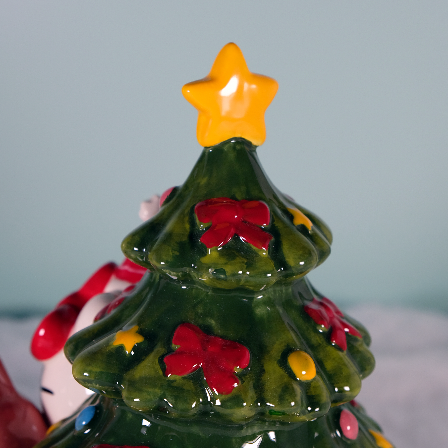 Featuring Hello Kitty, My Melody, and Cinnamoroll gathered around a beautifully decorated Christmas tree, this hand-painted ceramic scene captures the magic of friendship and holiday cheer. Dressed in festive red and pink winter outfits with Santa hats, the trio joyfully sings together under the twinkling star, spreading warmth and happiness wherever they’re displayed.