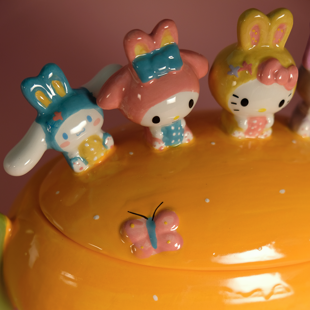 Celebrate the joy of Easter with the Hello Kitty and Friends Easter Candy Bowl by Blue Sky Clayworks! This hand-sculpted, hand-painted ceramic piece features Hello Kitty and her friends in an adorable Easter scene, bringing a touch of seasonal cheer and nostalgia to your home. 🍬🌸