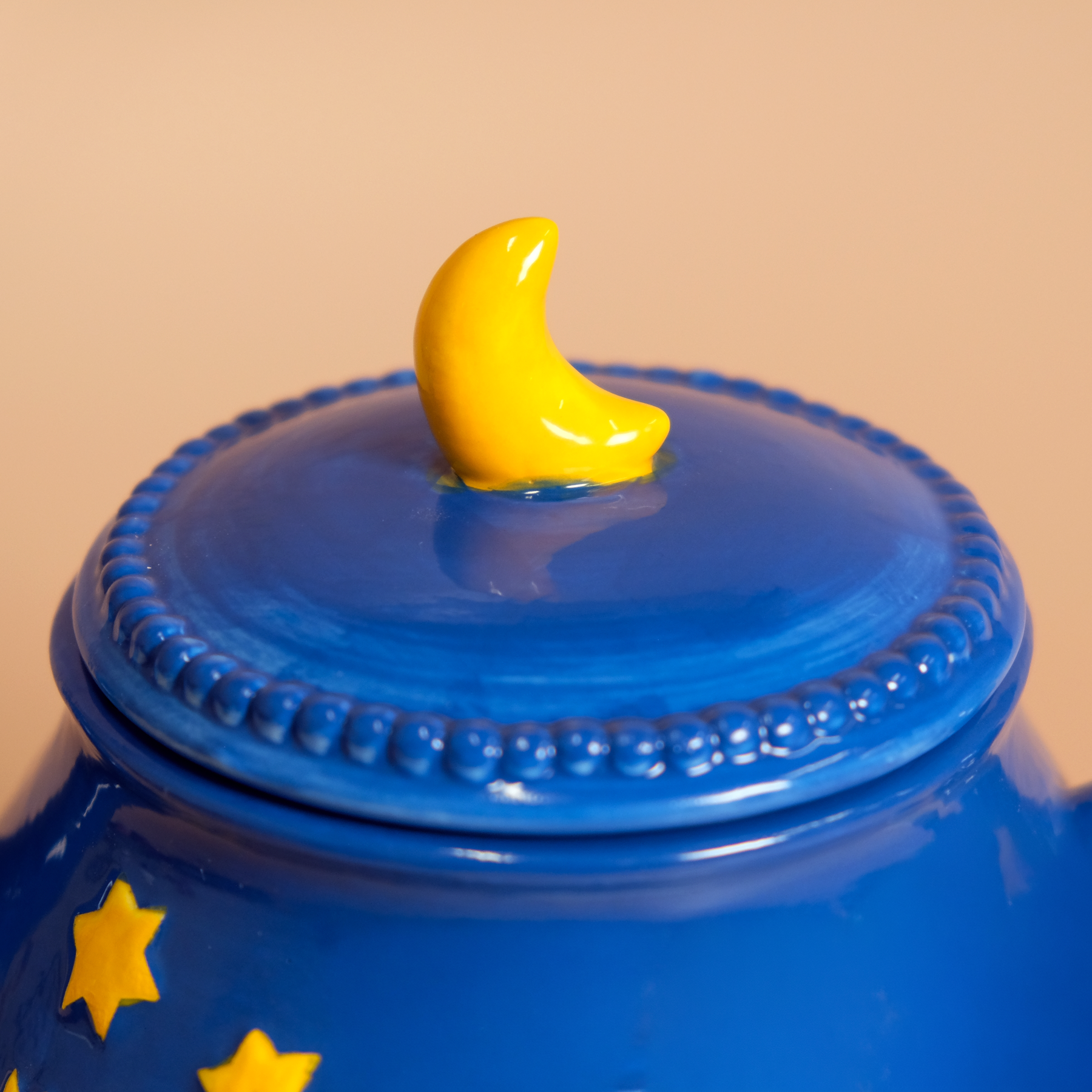 Hand-painted with a glossy glaze, this teapot captures the heartwarming simplicity of Miffy’s world — perfect for serving tea or displaying as part of a cherished collection. Each detail, from the moon finial to Miffy’s bright orange sweater, adds joy and nostalgia to your teatime ritual.