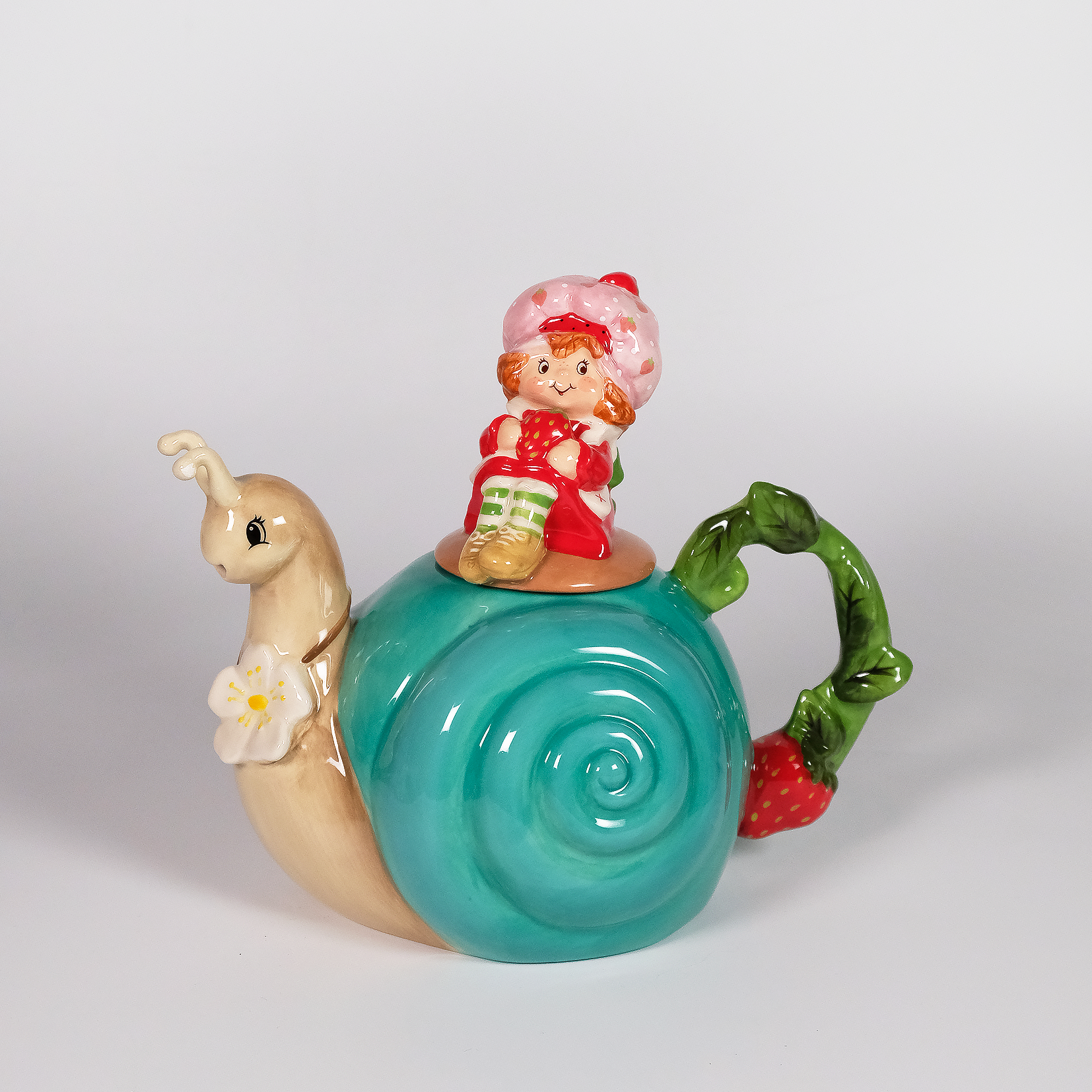 Bring a whimsical twist to tea time with the Berry Snail Sip n’ Steep Teapot. This delightful hand-painted teapot features a sweet snail with a bright teal spiral shell, complete with charming floral accents. Perched atop the lid is Strawberry Shortcake herself, adding the perfect touch of nostalgia and cheer as she sits ready to join your teatime ritual. 🐌🫖🍓